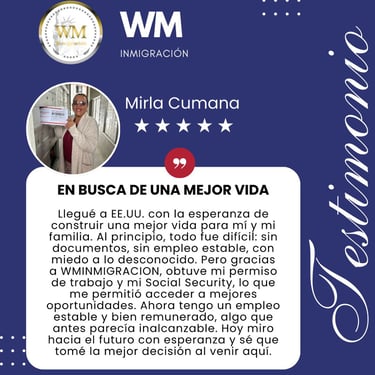 Reserve hoy mismo su cita para recibir un servicio personalizado con WM Servicios Hispanos.